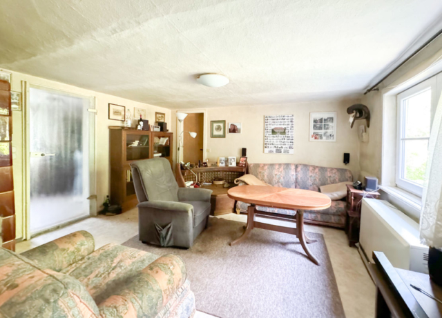 Am Ende des Weges …hier beginnt die Weite der Natur. Freilaufende Hühner, hoppelnde Kaninchen, die Katze schläft im Fenster, der Hund wacht vor der Tür… und wir entspannen genüßlich mit Blick ins Grüne. Das ist Massage für die Seele. Durch die Lage lässt sich hier die Abgeschiedenheit genießen. Das Wohnhaus empfängt uns mit einer hellen Veranda, in der eiligen Gästen ein Plätzchen angeboten werden kann. Kurzen Schrittes geht´s durch den Flur zur Küche und ins Wohnzimmer mit Kachelofen als zentrale Mitte. Gleich nebenan ist das Esszimmer sowie das Schlafzimmer und weiterführend das Freigeistatelier mit Ausgang ins Freie, um sich barfuß, begleitet vom Vogelgezwitscher, zu erden. Das Grundstück ist außerdem mit 3 Nebengebäuden bebaut, die sich zur Kleintierhaltung, als Werkstatt und zum Lagern eignen. Die verbleibende Fläche zeigt sich als Grünfläche, die Sie zu Ihrem Selbstversorgergarten erwachsen lassen können sowie den Kleintieren ihren gewünschten Auslauf zu geben. Sichern Sie sich diese Idylle. Wir freuen uns auf Ihren Kontakt.
