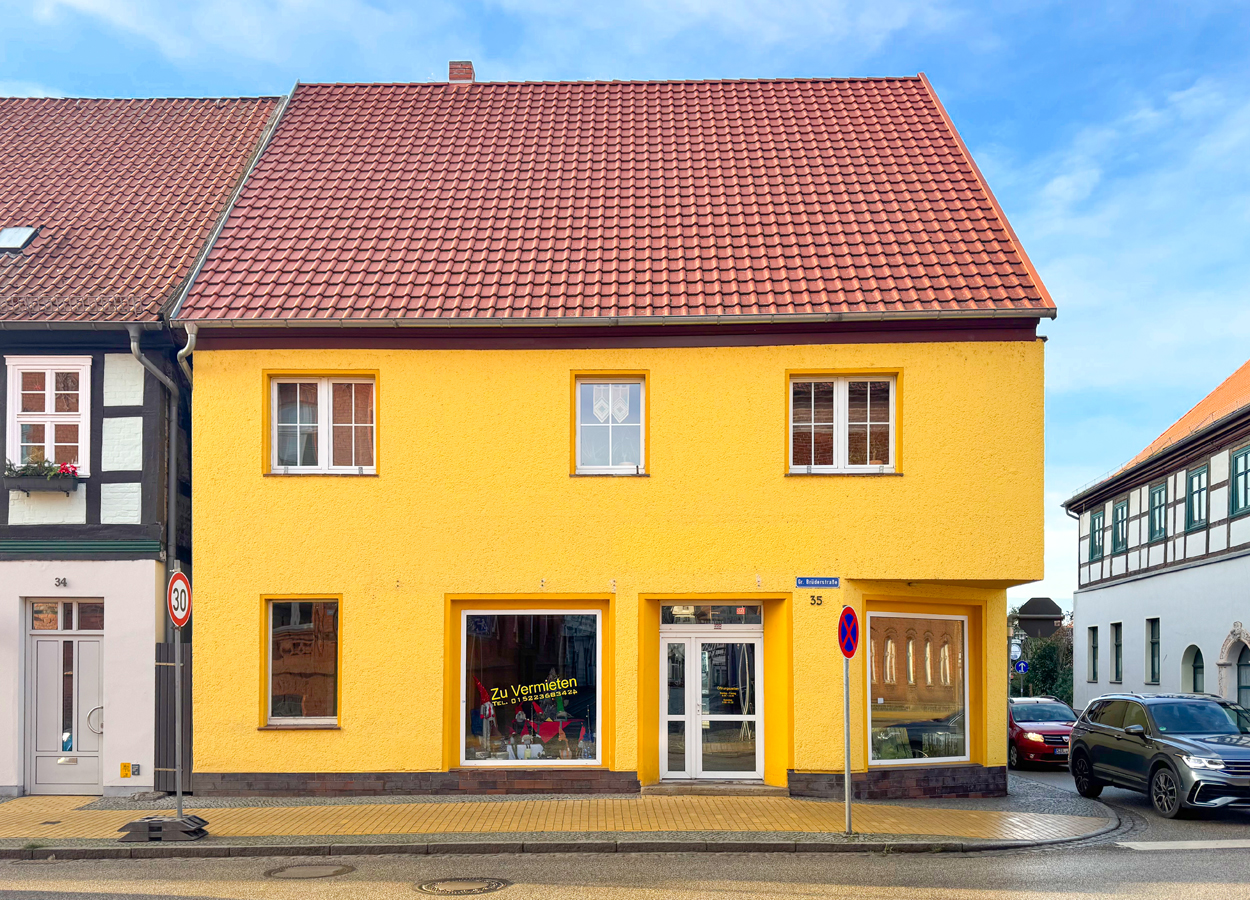 Der empfangsfreundliche Verkaufsraum mit Straßen- und Hofzugang verfügt außerdem über ein Büro und Personal-WC. Das Obergeschoss hält eine geräumige 3-Raum-Wohnung mit Dachterrasse nebst Küche inkl. Einbauküche, Diele, Familienbad mit Wanne und Dusche bereit. Im Dachgeschoss sind weitere Ausbaureserven vorhanden. Im Jahr 2018 wurde das Dach erneuert und die Fassade bekam einen frischen Schutzanstrich. Die Fenster, Sanitär und Heizung sind aus den Jahren 1991/1992. Ein befestigter Innenhof mit einem Lagergebäude vervollständigt das Grundstück. Verwirklichen Sie hier Ihre Geschäftsidee. Wir freuen uns auf Ihren Kontakt.Lage