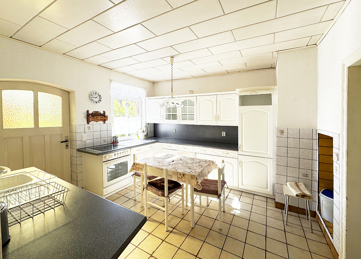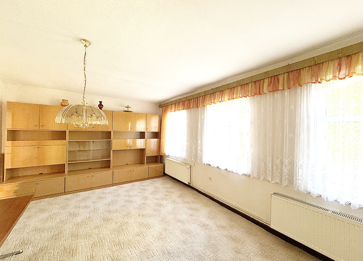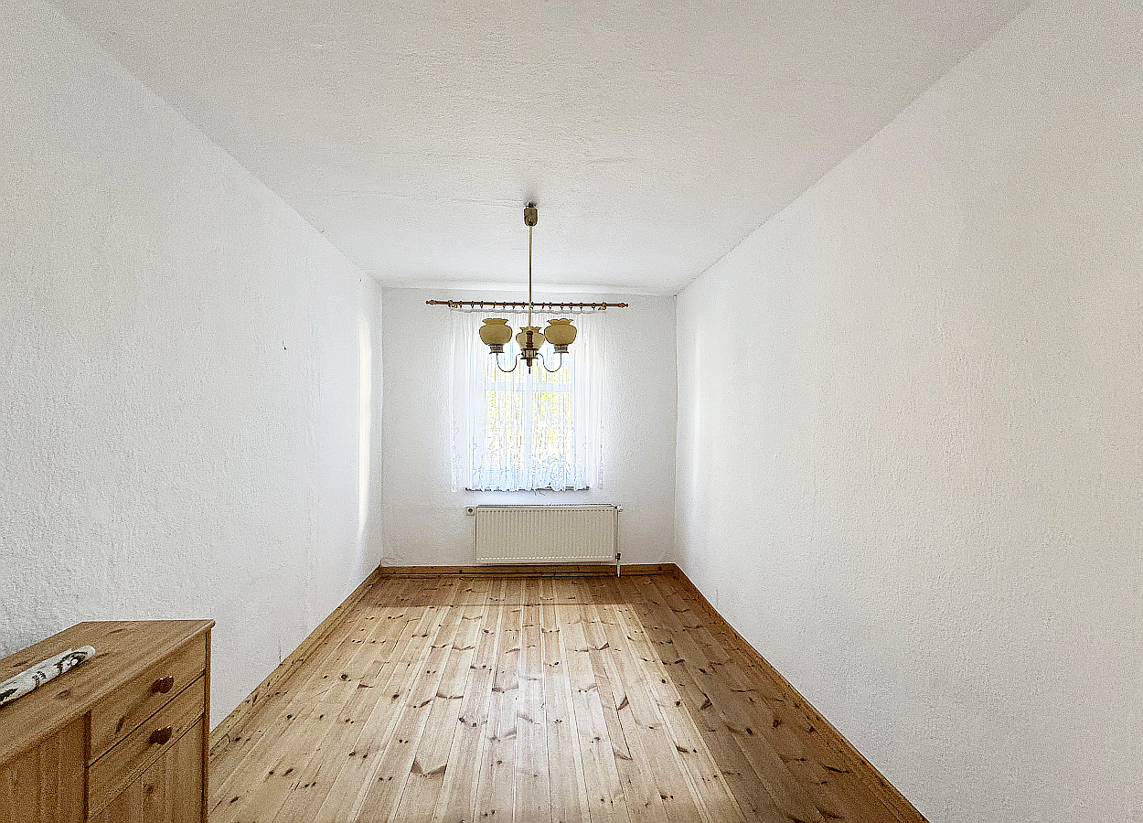 Gemütlich rustikal empfängt uns das Wohnhaus mit Rundbogenfenster und Fensterläden. Im Inneren zeigt sich die Erdgeschossebene mit 3 Wohnräumen unterschiedlichen Zuschnittes, einem Heizungsraum sowie Tageslichtbad mit Wanne und Küche inkl. Landhausküche, die über den Ausgang zum Hofgrundstück verfügt. Das Wohnzimmer kann zusätzlich von der Küche aus über einen Kachelofen beheizt werden. Im Eingangsflur ist noch ein gepflegter Terrazzoboden mit farblich abgesetzter Umrandung vorhanden. Das Dachgeschoss hält ein Gästezimmer für Sommergäste vor. Die verbleibende Fläche ist offener Dachboden, der noch ausgebaut werden kann und der sich gegenwärtig ideal zum Wäsche- oder Kräutertrocknen eignet. Das Hofgrundstück ist mit einem ehemaligen Stallgebäude und einer Scheune bebaut. Kleintierhaltung ist hier herzlich willkommen. Richten Sie hier Ihren ländlichen Lebensmittelpunkt ein. Wir freuen uns auf Ihren Kontakt.Lage