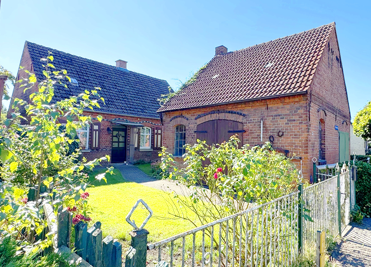 Freuen Sie sich hier in gepflegter, traditioneller Backsteinbauweise zu wohnen. Das Schmiedeatelier positioniert sich im gleichen Baustil im Eingangsbereich des Wohngrundstückes, weil es die Hauptaufgabe der Hauseigentümer einst war.