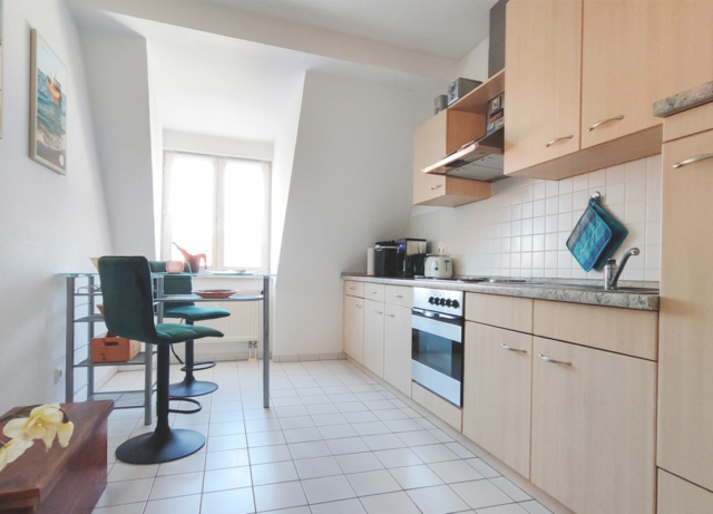Loft feeling – schön süd-westlich ausegrichtet… mit Weitblick… im direkten Zentrum unweit des Marktplatzes. Lassen Sie sich hier auf der Balkonterrasse von der Sonne bis in den Abend hinein verwöhnen und genießen den stimmungsvollen Weitblick über die Altstadt. Ein Personenaufzug bringt Sie entspannt bis vor die Wohnungstür im 3. OG. Wegen der zentralen Lage, wird die Wohnung als Ferienwohnung von den Eigentümern selbst genutzt. Zwei Zimmer, voll möbliert, inklusive moderner Küche, Tageslichtduschbad, komfortablem Wohnzimmerbereich mit Balkonzugang und gemütlichem Schlafzimmer nebst hellem Flur ebenso mit Balkonzugang. Hohe Vermietungspotenziale durch zentrale Lage, Nähe zu Altstadt und auch Hafen. Einkaufsmöglichkeiten, Sehenswürdigkeiten, Restaurants, öffentliche Verkehrsmittel sind in unmittelbarer Nähe. Nutzen Sie die Gelegenheit und sichern Sie sich dieses Angebot! Wir freuen uns auf Ihren Kontakt.